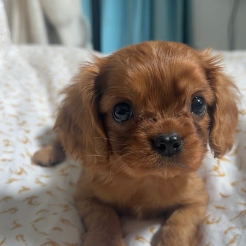 🐶 Pappan ”Teddy” är en renrasig dvärgpudel i färgen ”fawn” med SKK stamtavla och väger ca 4 kg.
