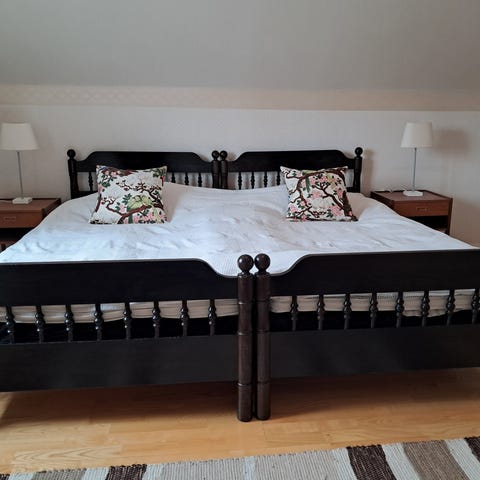 2st sänggavlar IKEA MANDAL lackad furu. 6 st hyllplan följer med varje sänggavel (totalt 12 om båda gavlar köps).
