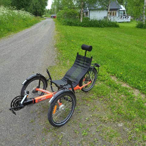 Hopfällbar el liggcykel för transport per flyg, etc, Toxy