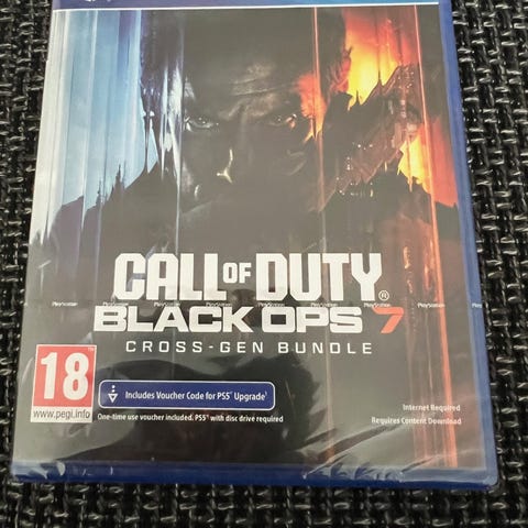 Call of Duty Black Ops 7 Playstation 5 spel. Fysiskt PS5-spel på skiva med PEGI 18-märkning. För en spelare och flerspelarläge beroende på spelinställningar och nätverksanslutning. Anpassat för Playstation 5-konsol.