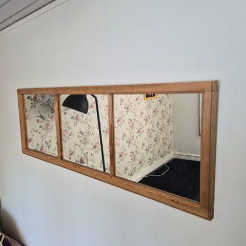 Dörr med spegel som kan användas som sänggavel eller som dörr på skena m.m