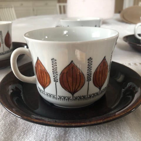 Säljer vackra ARABIA thékoppar i porslin av serie "SUVANTO ".