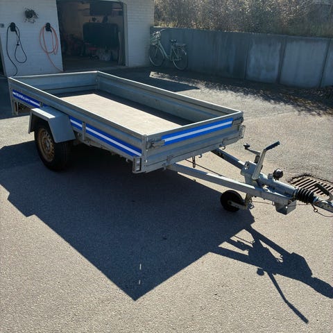 Wiola/WT Trailer P252 gallersläpvagn med kapell från 2018 i mycket gott skick och mycket lite använd+förvarad huvudsakligen i garage. Totalvikt 1200kg, varav 930kg maxlast. Släpvagnen har galvad stålram och täckande kapell med avtagbara gallergrindar och blå presenning. Släpvagnslås med nyckel medföljer. F.n. avställd.