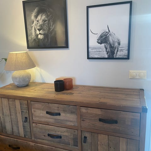 En jättefin skänk med 2 skåp och 3 lådor, och tillhörande spegel. Fint skick. Spegel 110 *127 cm, skänk 152 cm bred, 45 cm djup och 90 cm hög. Obs! Spegeln är separat, på bilderna står den på skänken. Hämtas av köparen.