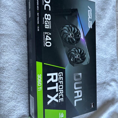 Asus Dual GeForce RTX 4060 grafikkort med 8 GB GDDR6-minne. Modellen har dubbla kylfläktar och är avsedd för stationära datorer med PCIe-anslutning. Stöd för Nvidias RTX-teknik med ray tracing och DLSS. Levereras i originalförpackning enligt bilderna.