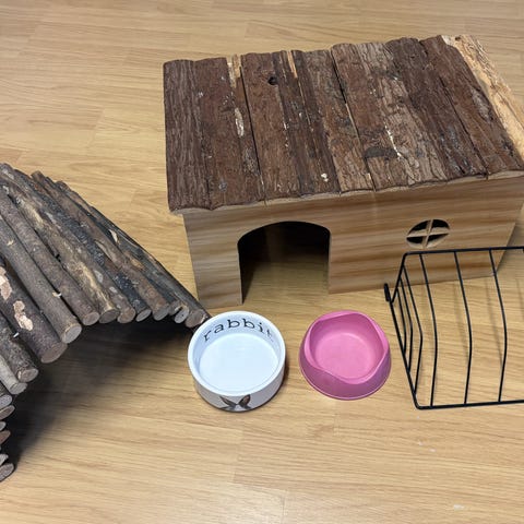 Tillbehör till hamster, hjul godkänt för guldhamster 28cm dm. Hamster vi hade dog av ålder och inte sjukdom. Fina saker och mesta del av naturmaterial och helt giftfritt för de små liven. Hämtas i Helsingborg Swish eller kontanter.