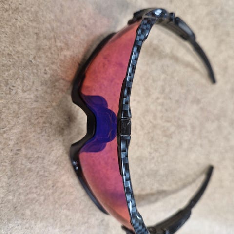 POC solglasögon med sköldformad lins och utbytbar extralins. En lins är spegelblank i silverton och den andra är klar. Bågarna är i ljus färg med näsdel och skalmtoppar i plast. Levereras i hårt etui med formgjuten insida för glasögon och extralins. Passar exempelvis för cykling, löpning eller andra utomhusaktiviteter där ögonskydd behövs.