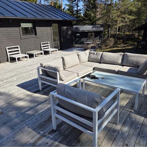 Soffmoduler, hörndel: 850mm bred, 850mm djup, 750mm hög, sitthöjd 290mm.