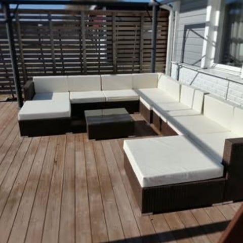 Inköpt förra året. Alltid stått inglasad skyddad från väder och vind. Mer än 50% rabatt på Jysks 50% rabatt. Se länk för mått och mer info: