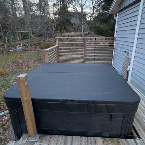Äldre spabad för utomhusbruk bortskänkes. Den som vill ha det står själv för bortforsling av badet.