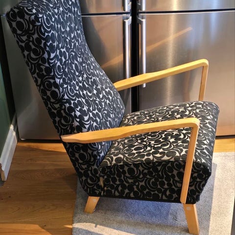Nyligen omklädd av tapetserare! Otroligt charmigt fåtölj från 40-talet.