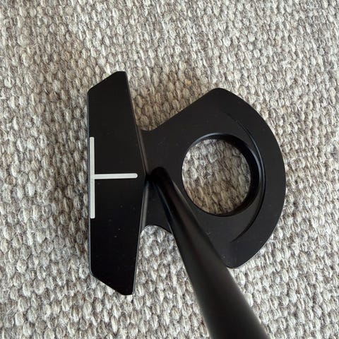 Isvart utförande. Putterhuvud med cirkelformad utskärning och tydlig vit siktslinje på ovansidan. Undersidan är försedd med flera justerbara vikter. Medföljande headcover i svart med blå logotyp. Passar för golfspelare som söker en mallet-putter med stabil konstruktion och justerbar viktfördelning.