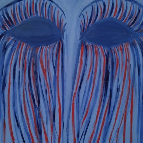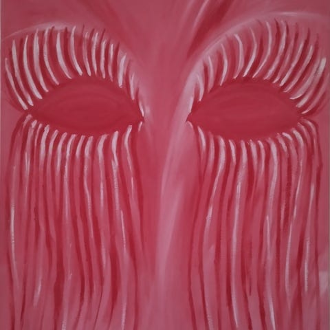 Oljemålning av Pia Vitguldadvance. Tavlan heter Underhavs blomma. Tavlan har storlek 54X65CM. Tavlan är unik och kommer inte att målas om och därav högt personligt värderad.