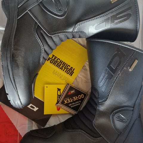 Höga sneakers i svart färg med vit sula. Skorna har snörning framtill. Jag har normalt storlek 40, men dessa i 41. Köpta på Handelsboden i Gävle nyligen. Använt dem två gånger = som nya!