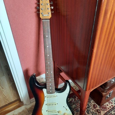 Fin Stratocaster från 1999, spelar och låter riktigt bra! Klassisk sunburst som det sig bör!