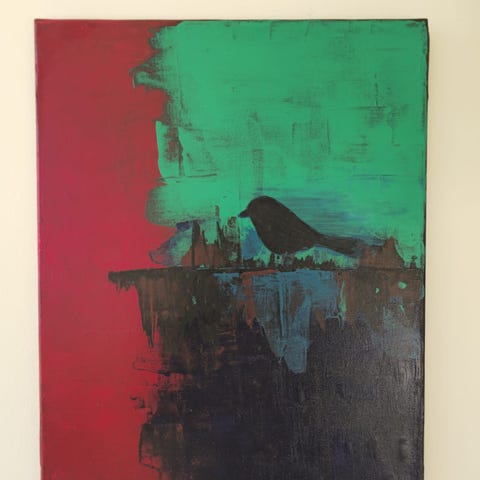 Akryl målning av Pia Vitguldadvance. Tavlan heter Väder. Tavlan har storlek 60X50CM. Tavlan är unik och kommer inte att målas om och därav högt personligt värderad.