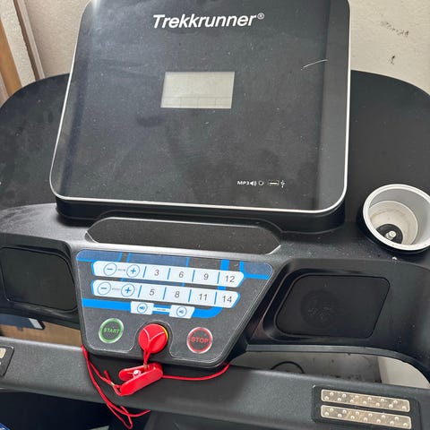 inSPORTline T400i löpband med elektronisk display och kontrollpanel för hastighet, lutning och träningsprogram. Löpbandet har handtag framtill och på sidorna samt inbyggd konsol med skärm som visar träningsdata. Manual medföljer enligt bild, med information om installation och användning. Passar för inomhusträning och löpning eller gång . För tunga människor upp till 180 kg(god stötdämpning). Max 22km/h. Lutning max 22%. Integrerat Kinomap ( Där Du kan tävla med andra i tex gång i de Italienska Alperna🤗). Eller Swift. 100 förinställda träningsprogram. 3 inställbara programnivåer. Pulsmätning, FAT och HRC. Väger 90 kg så bärhjälp och hämtas på plats! (Lerdalatrakten utanför Skövde). Fantastiskt löparband som tyvärr måste säljas pga flytt!