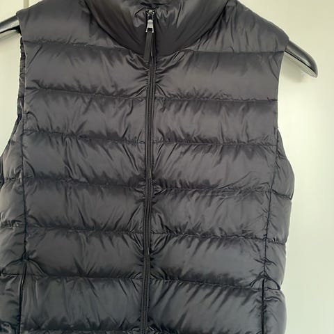 Uniqlo dunväst för herr i storlek S. Västen är grå och fylld med dun, med horisontella kanaler och knäppning framtill. Modellen är ärmlös med rund halsringning och rak passform. Passar som lätt ytterplagg eller som mellanlager under jacka vid kyligare väder.