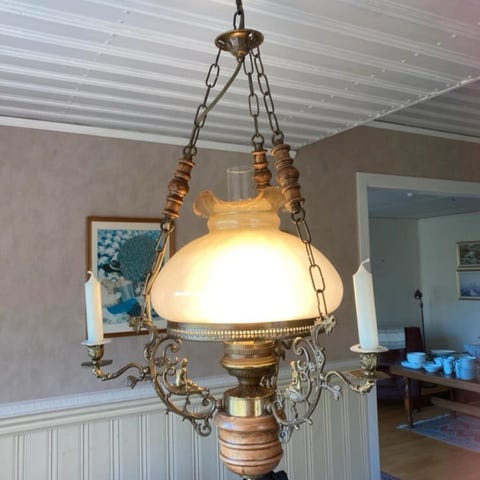 Lampan är i bra bruksskick, utan nagg på glaset. Länkkedjan ser fin ut.