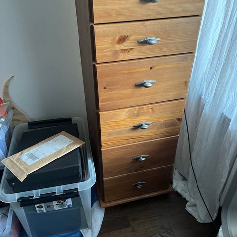 En Hemnes byrå som är målad vit. Lådor fungerar som de ska. Är fin i sin helhet, med få märken.