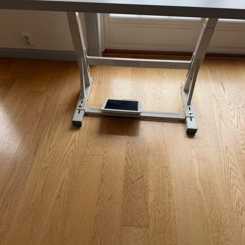 Passar för teckning, målning eller annat skapande arbete på bord. Ytan visar spår av tidigare användning med färgmärken.