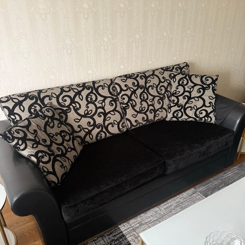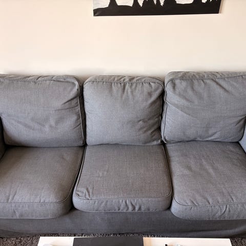 Nu är det dags att sälja soffgruppen! Den har några år på nacken och behöver ett nytt tyg alternativt ett par lagningar i klädseln, därav det låga priset. Nytt tyg går att köpa i alla världens varianter på IKEA. Modellen heter Ektorp och annonsen gäller hela gruppen (3+1+pall med förvaring).