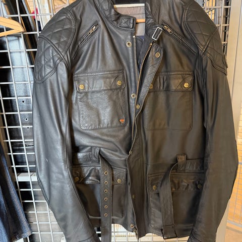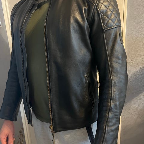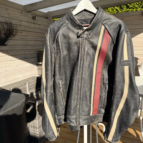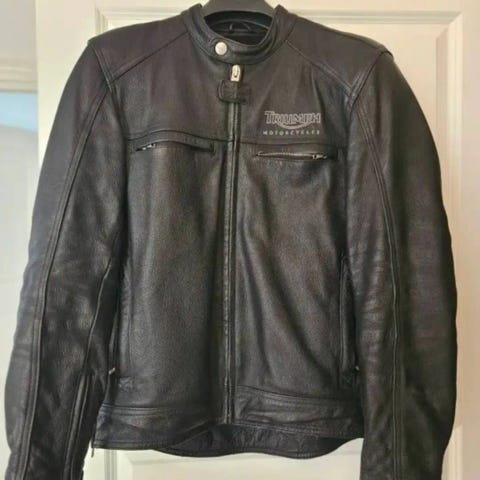 Triumph skinnjacka i sportmodell säljes i mycket fint skick. Jackan är i storlek M och har endast använts cirka fem gånger, så den är i princip som ny.
