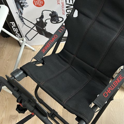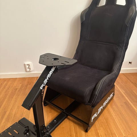 Playseat racingsäte med pedal- och rattstativ i svart utförande. Sätet är utformat som en skålstol för bilspel och racingsimulatorer och monteras på en stabil ram. Framtill finns justerbart fäste för pedaler samt separat platta för ratt eller växelspak. Passar för användning tillsammans med kompatibla rattar och pedaler för spelkonsol eller PC. Konstruktionen är av metall med klätt säte för ökad komfort vid längre spelpass.