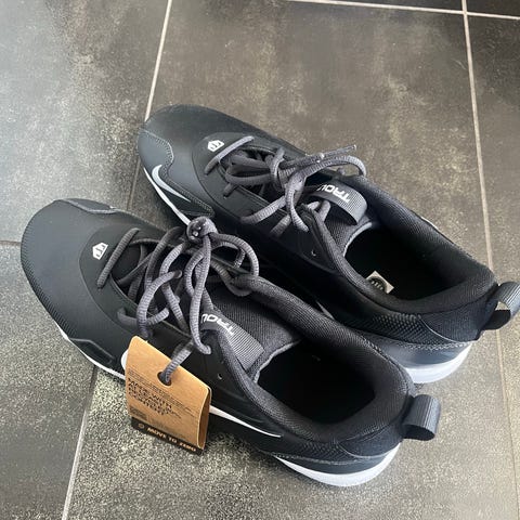 Nike träningsskor i storlek 38. Skorna har ovandel i mörk färg med gröna detaljer och vit mellansula. Yttersulan är mönstrad för grepp vid träning. Modellen är låg och snöras med dragsko. Passar för allmän träning och vardagsbruk.
