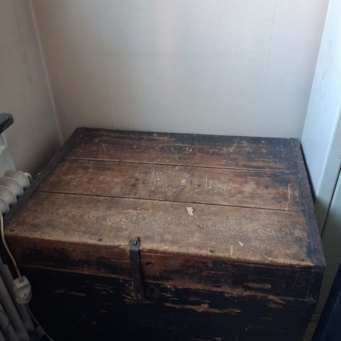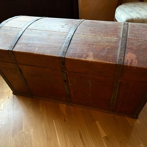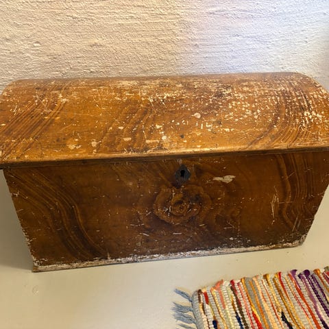 Trä kista med innerfack brun bortskänkes