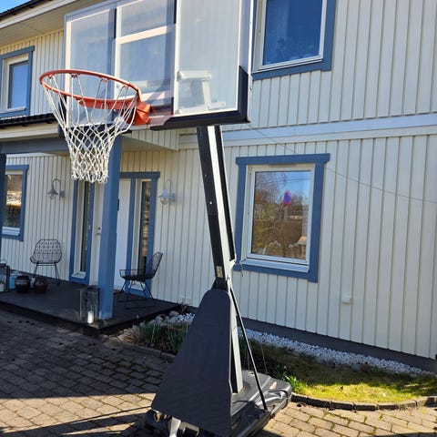 Stabilt och justerbart basketställ i kraftigt Ø66-stål. Stativet är både galvaniserat och pulverlackerat och därmed väl skyddat mot rost.