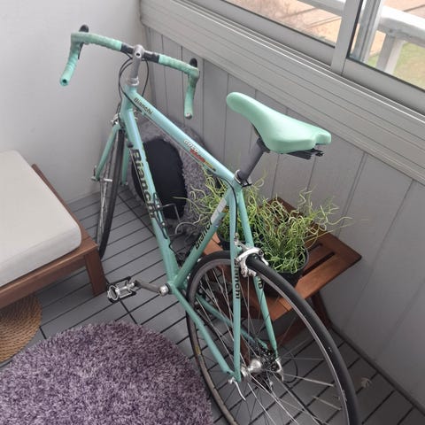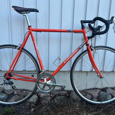 Cykeln är utrustad med första generationen shimano 105.