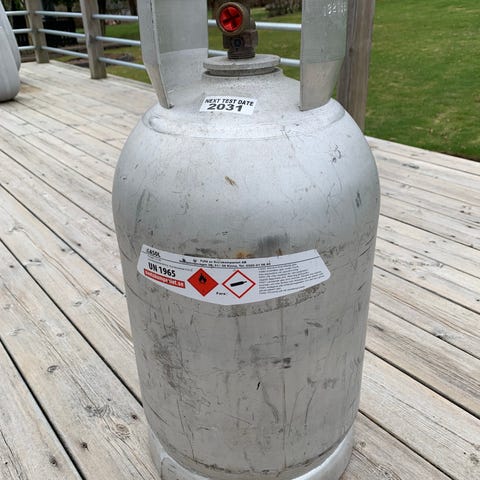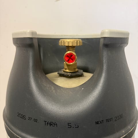 En gasolflaska PK5 i kompositmaterial med bärhandtag .Passar för gasol till grill eller andra gasol apparater.