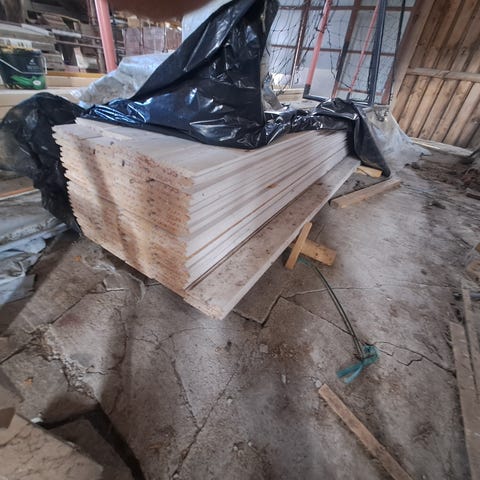 Golvvirke gran torkat ca4 år. Anpassat för gammal byggnad med långt avstånd mellan sparrarna.