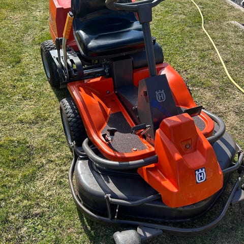 En Husqvarna rider 115b med 14,5hk motor. Årsmodell 2013 . Uttagen 2014 . Har inte gått många timar . Går bra. Bytat lite remmar och slitdelar genom åren.
