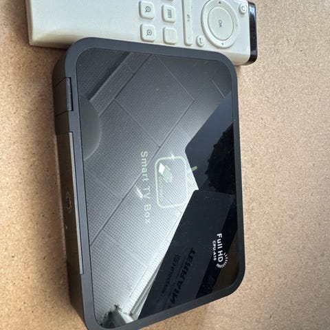 Sagemcom DTIW77 HD Boxer digitalbox med fjärrkontroll och strömadapter.