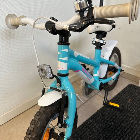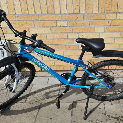 Woom barncykel med 24" hjul i blå färg. Cykeln är utformad för barn och har låg ram för enklare på- och avstigning. Utrustad med sadel och styre anpassade för barn samt standardpedaler. Passar för vardagscykling till skola och fritidsaktiviteter på väg och cykelbana.