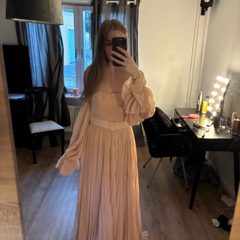 Ljusrosa balklänning från Cotton Club. Storlek 10 men flexibel i storlek pga resåren baktill. Kommer med tillhörande sjal.