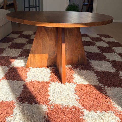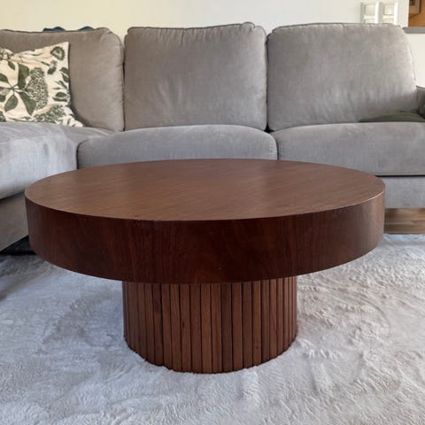 Àljer ett stilrent soffbord frÄn Ellos (modell Bisselina, à 80 cm).