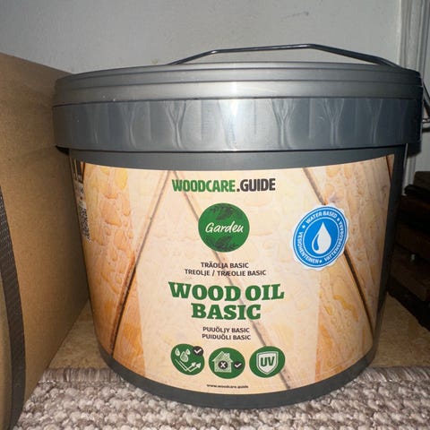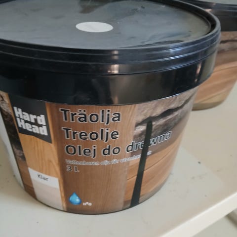 Två 5 liters burkar med Timberex golvolja i kulören Early American. Pris avser båda burkarna.