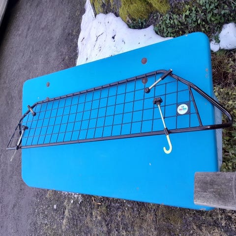 Skyddsgaller i svart metall. Består av ett bakre galler och ett sidogaller som monteras i bilen för att avgränsa lastutrymmet, till exempel för transport av hund eller last. Volvo orginaltillbehör. Konstruktionen är av rörformad metall med fästen för montering mot bilens inredning.
