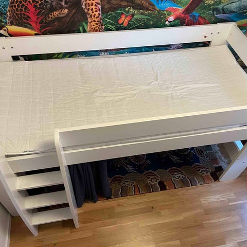 Ikea vitval loftsängsstomme, vit/ljusgrå, 90x200 cm. Madrassen ingår.