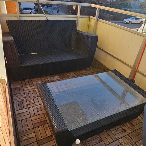 Utemöbel loungeset soffa fåtöljer bord konstrotting svart med grå dynor
