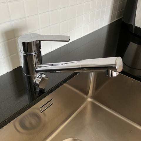 FMM köksblandare i kromutförande. Blandaren har ett högt, svängt piputlopp och ett ettgrepps handtag för reglering av vattenflöde och temperatur. Passar för montering i diskbänk eller bänkskiva i kök. Anslutning för standard köksinstallationer.