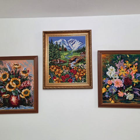 3 st hembroderade tavlor