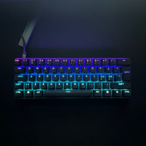 Mekaniskt kompakt tangentbord i svart utförande med RGB-belysning i tangenterna. Tangentbordet har en mindre layout utan numerisk del, vilket gör det platsbesparande på skrivbordet. Flerfärgad bakgrundsbelysning kan ställas in i olika lägen enligt bilderna. Anslutning sker via kabel. Passar för användning till dator vid exempelvis skrivarbete eller spel. Har olika färger och modes