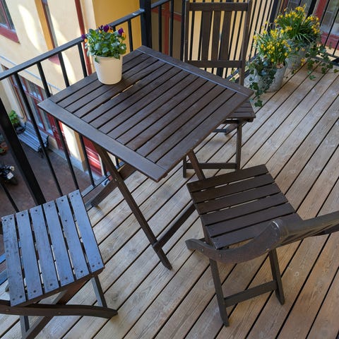 Äldre bord och stol, fullt fungerande men behöver oljas, målas mm