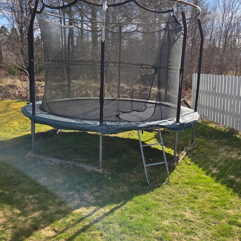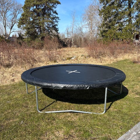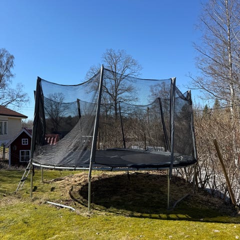 Studsmatta 4 m med skyddsnät – säljes i befintligt skick