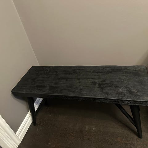 Skivan är klädd i försinkad bleckplåt och underredet är i rustikt trä.