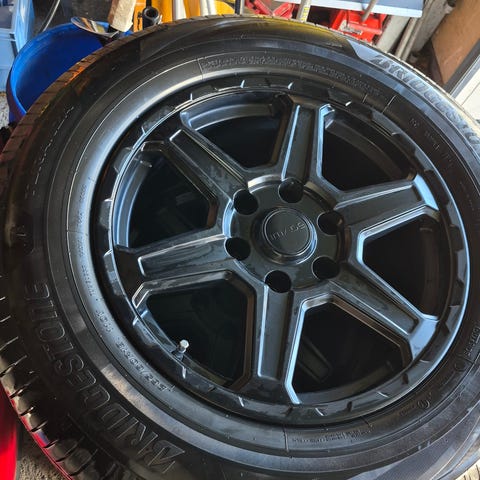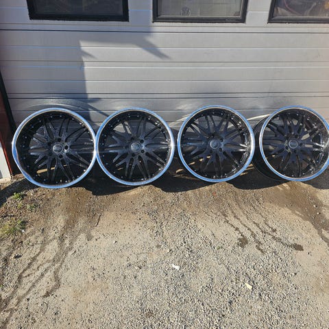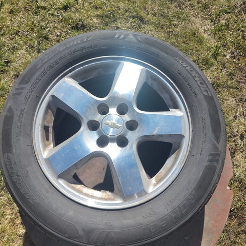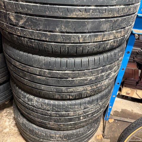 Kromade fälgar och sommardäck med mycket mönster kvar.